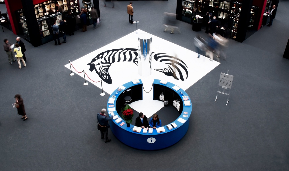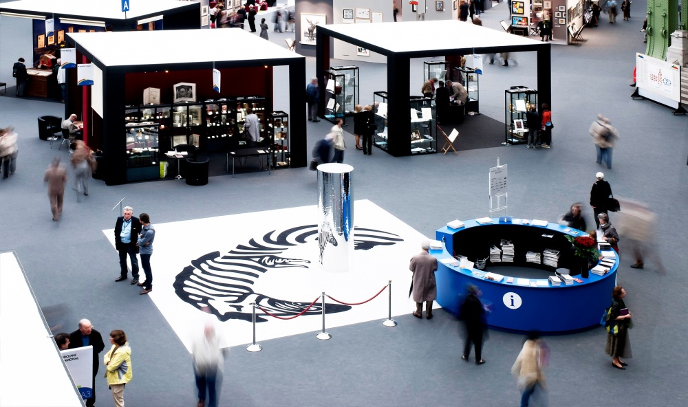 In 2013, the Library of the Natural History Museum was honoured by the Salon du Livre Ancien et de L'Estampe at their annual bookfair. Out of respect for this prestigious institution, LWA designed an art installation representative, in its own way, of natural history. Scienctists continue to be intrigued by this curious animal. Why do zebras have stripes ?  Extremely visible on the savannah, it has long been considered an exception to the rule of camouflage. However, in 2012, research suggested otherwise. The zebras' stripes were found to act as camouflage against horseflies. These insects, harmful to many mammals, use polarised light to locate their « prey », however, the  stripes offer a stroboscopic effect which disrupts the flies ability to see the zebra. The prinicpal of an optical illusion was applied to the work Razzle Dazzle. During the First World War, this technique, based on intersecting motifs, was widely used to protect boats from enemy fire. The installation which symbolises the zebras'« camouflage », as highlighted by naturalists, is a cylindrical anamorphosis. A distorted image of the animal with the famous stripes is reflected on a convex surface  to reveal a perfect representation.